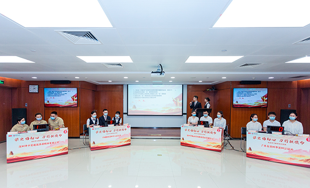 5月28日下午,中裝建設聯合中國銀行深圳中心區支行、深圳市物業專項維修資金管理中心、深圳市深圳公證處共同舉辦了以“學史悟初心 力行擔使命”為主題的黨史學習教育知識競賽。中裝建設及三家共建單位黨委班子成員、四家單位黨員代表參加本次活動。